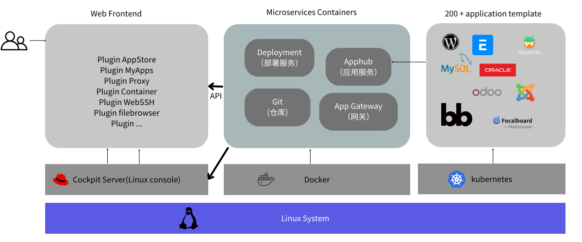 我们采用的技术要素包括:Linux, Docker, K8s, API 网关,服务发现,应用网关,应用编排,Git等。