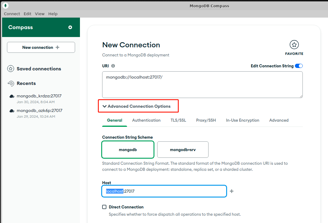 Click the MongoDB Compass icon on the desktop to open MongoDB Compass.